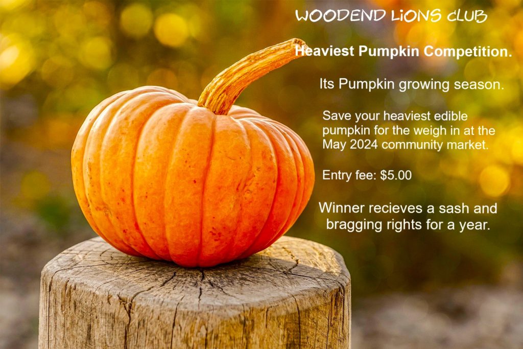 Welcome to the Woodend Lions Club heaviest pumpkin competition 2025. Its been a great growing season and for all those who have their own pumpkin patch here is your chance to be known at the Woodend Master Pumpkin grower for 2025.