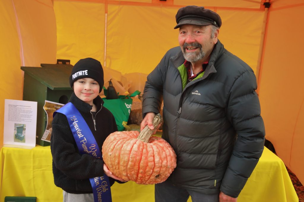 Jack (8) & John (78), grandson & grandfather from Carlsruhe with a whopping edible orange pumpkin of 14.71kg. Hearty Congratulations and bragging rights for the next year.